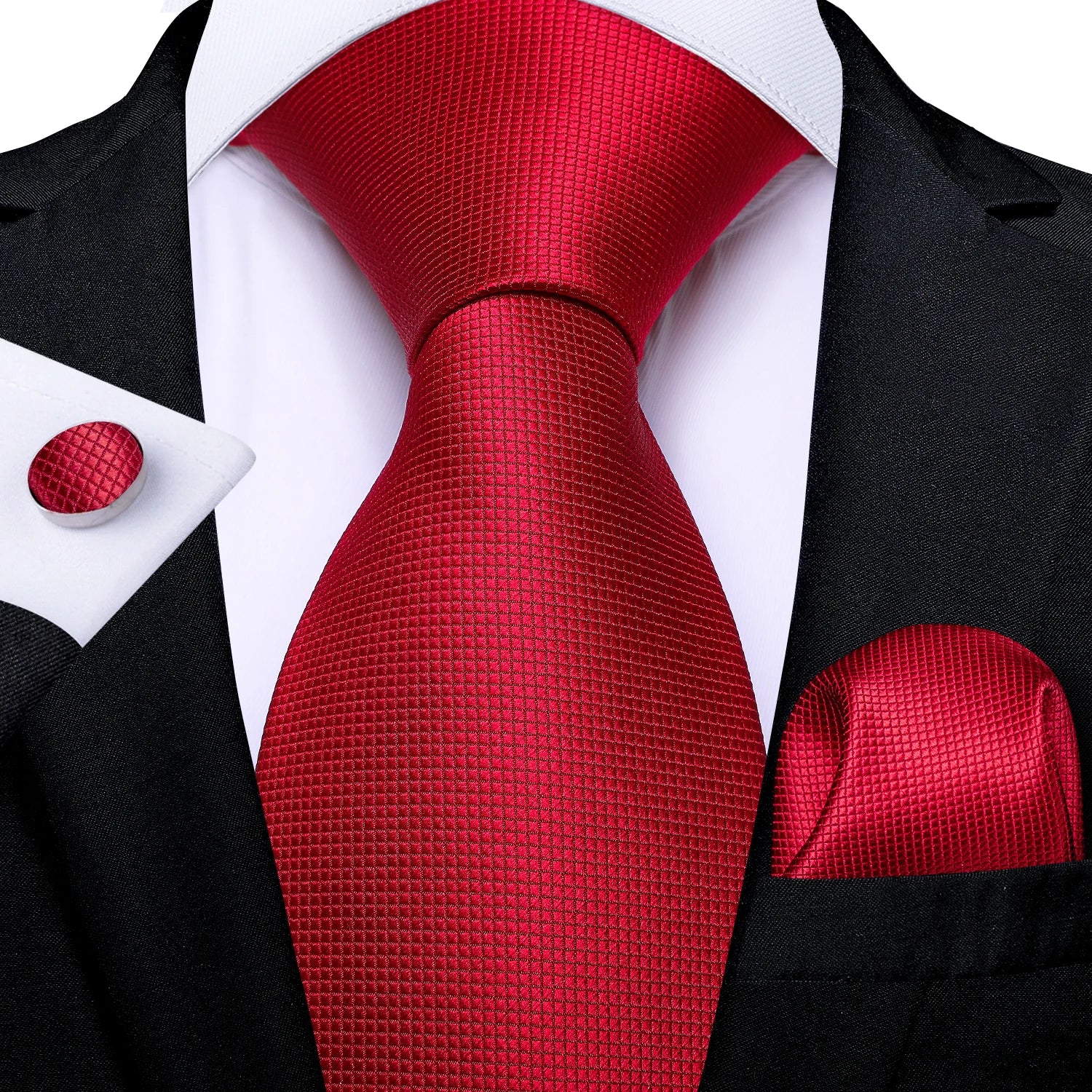 Men's Fashion Solid Tie Set with Handkerchief and Cufflinks